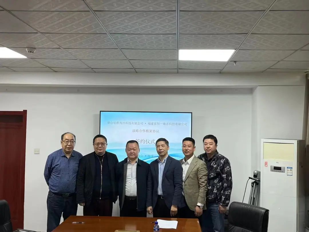 在烟台,调研组一行来到牟平区海洋发展与渔业局,与杨德时副局长等深入交流。双方聚焦绿鳍马面鲀产业发展,充分探讨了开云手机站登入海科公司在牟平的产业规划和发展愿景,指出双方优势互补,有利于将“小鱼”做成“大产业”。随后,开云手机站登入海科公司与烟台银礁海洋科技有限公司签订战略合作协议。双方将重点围绕绿鳍马面鲀深海养殖等方面展开合作,探索共建跨越南北的绿鳍马面鲀产业互动生态圈,协力促进产业高质量发展。