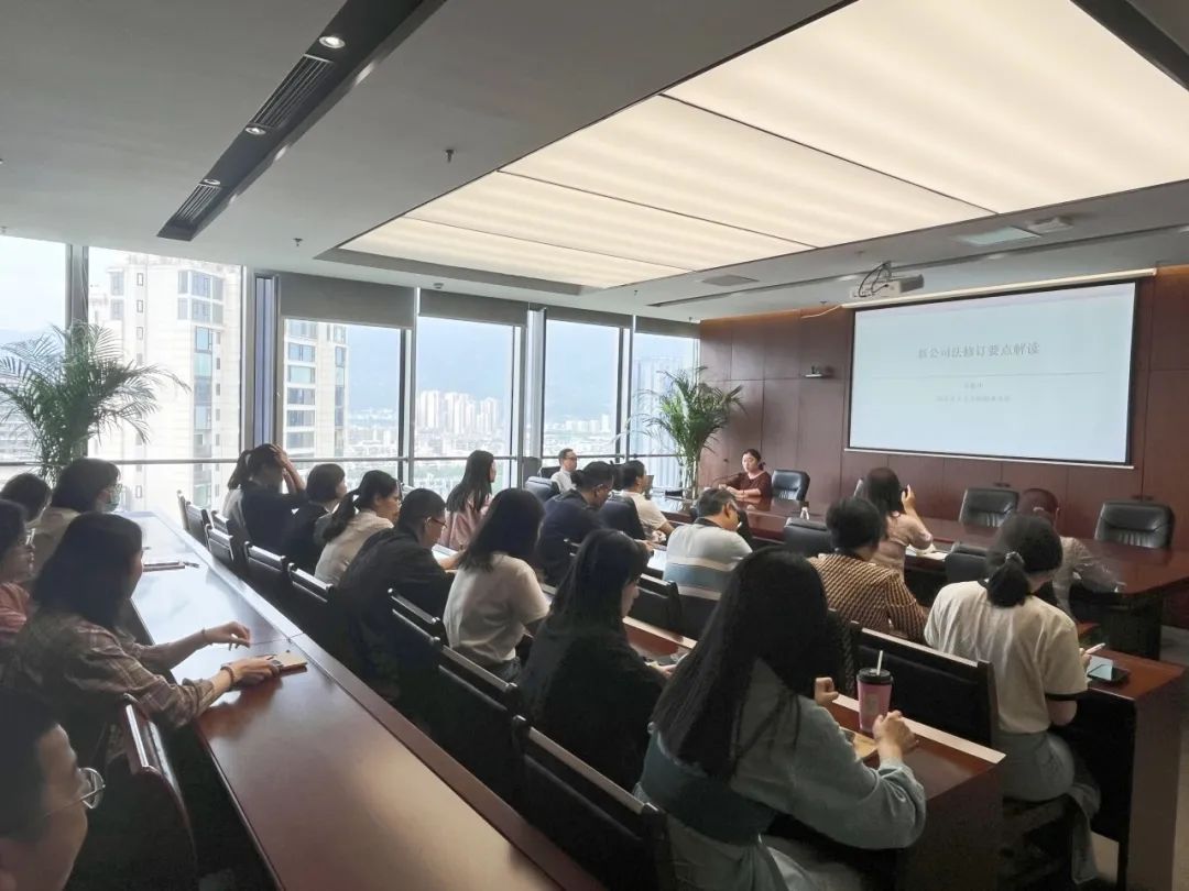 本次培训邀请福建亚太天正律师事务所梁秋华律师担任主讲人。他介绍了《公司法》历次修正和修订情况,并结合各类实务案例,对新《公司法》重大制度变革、新《公司法》对公司治理结构的影响等要点进行解读,进一步引导集团干部职工全面把握、准确理解《公司法》的新要求。